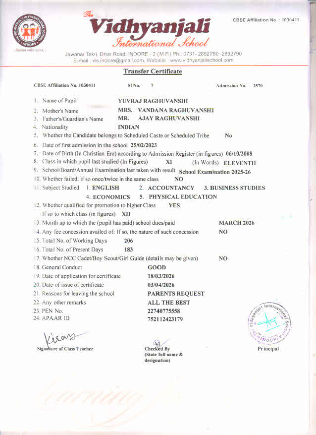 | YUVRAJ RAGHUWANSHI | 2570 | Download |